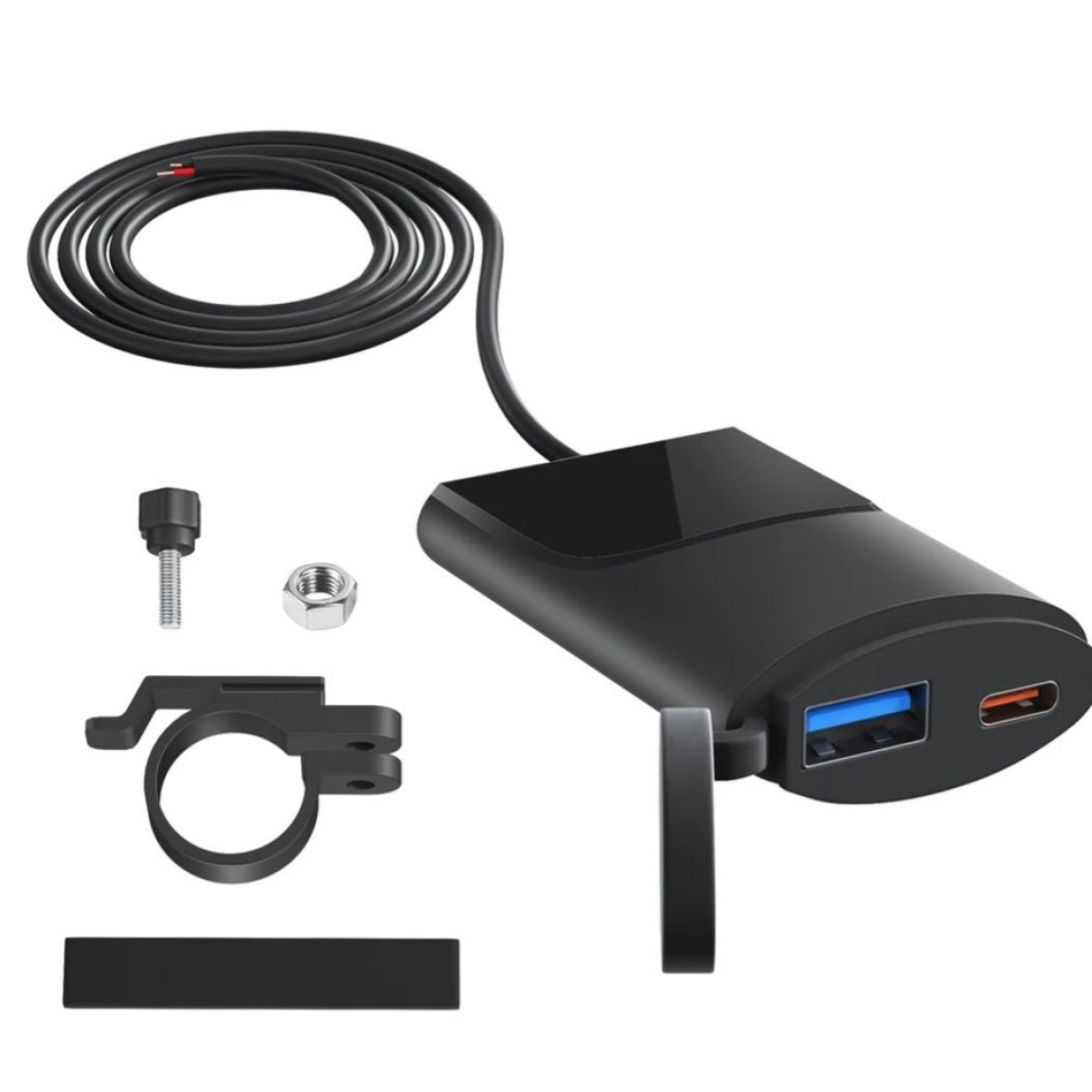 1. Подвійний швидкий зарядний пристрій А + С: модернізований зарядний пристрій для телефона мотоцикла обладнаний двома портами 30 Вт USB-C (живлення від PD) і 18 Вт USB-A. Підтримує кілька протоколів швидкого заряджання. Ви можете заряджати два пристрої одночасно.