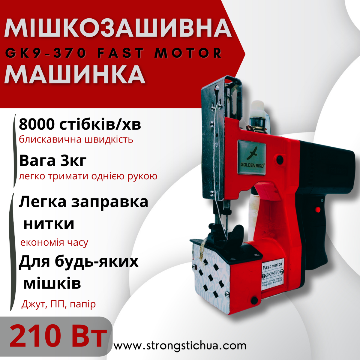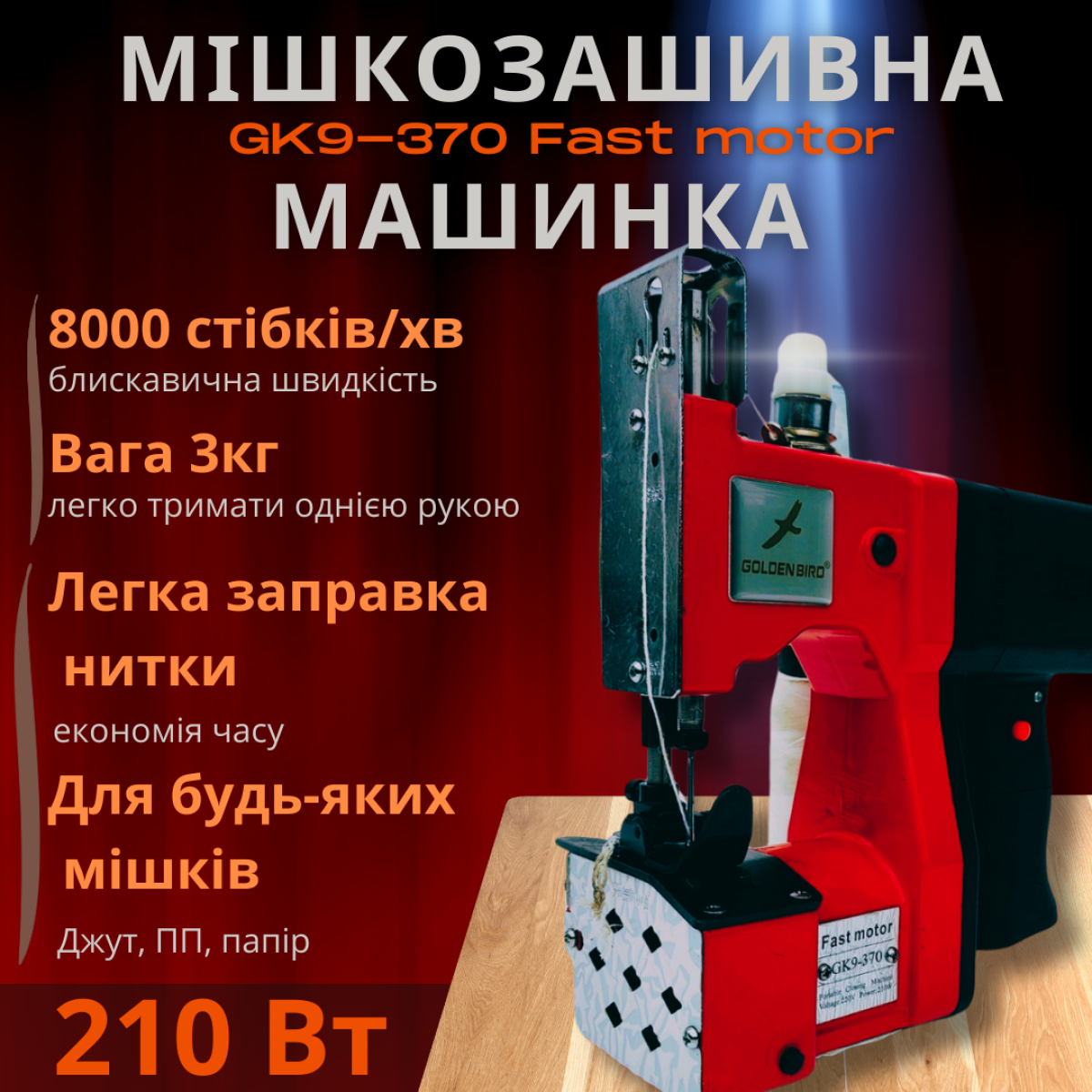 Мішкозашивочна машинка Golden bird Gk9-370 Fast Motor 210w